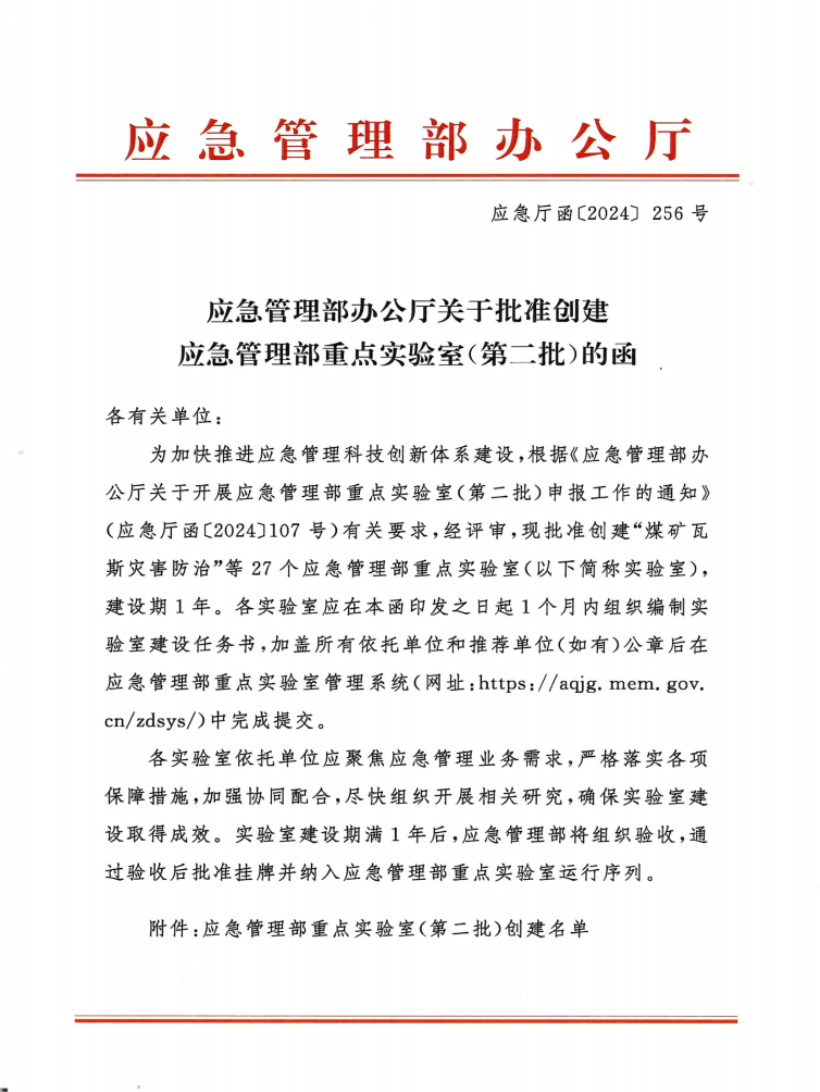 近日,应急管理部发文(应急函〔2024〕256号),批准创建27个应急管理部重点实验室。beat365正版唯一官网必一作为依托参与单位获批“工贸行业安全风险防控联合创新应急管理部重点实验室”。我校将在本重点实验室建设中发挥工贸行业安全风险防控领域科研、学科、人才优势,推动安全应急领域产学研合作与产业链紧密结合的创新发展,为自治区安全与应急产业的可持续发展提供强有力的支撑。