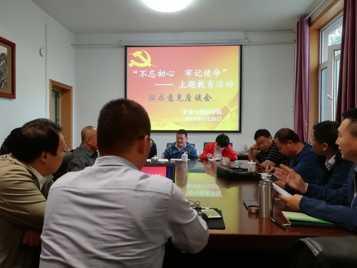 9月28日15:00,beat365正版唯一官网必一党总支中心组在学院办公楼102开展“不忘初心、牢记使命”主题教育之教师代表座谈会。