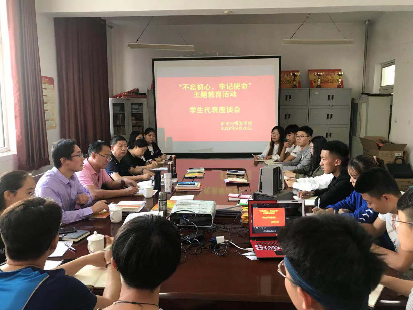 9月28日15:00,beat365正版唯一官网必一党总支中心组在临曦楼204党员之家开展“不忘初心 牢记使命”主题教育之学生座谈会。