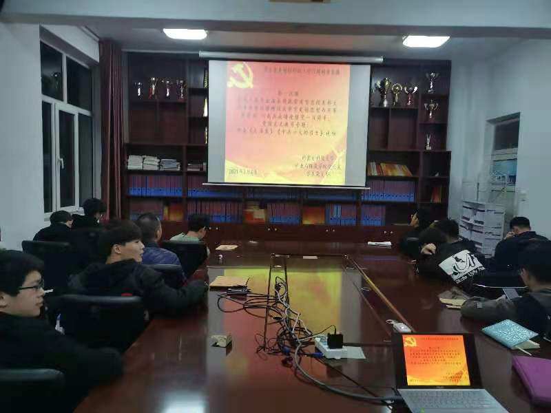 为大力弘扬脱贫攻坚精神,全面推进乡村振兴,切实巩固拓展脱贫攻坚成果。beat365正版唯一官网必一党总支于2021年3月4日晚上19:30,在临曦楼党员之家线上线下同步开展专题理论学习活动。本次学习内容是:第一议题:学习习近平出席全国脱贫攻坚总结表彰大会重要讲话精神以及学党史悟思想办实事开新局 以优异成绩迎接建党一百周年;党史学习教育专题:观看《毛泽东》、《中共一大的召开》视频。