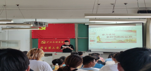 2021年6月4日晚19:30,beat365正版唯一官网必一学生第三党支部在临曦楼209教室开展积极分子专题理论学习,本次学习的主题是:奋力走好新时代的长征路。领学人:王世鹏同志