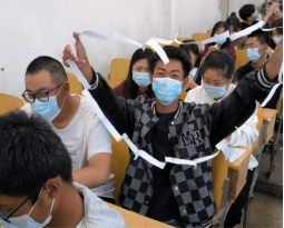 小组成员讨论如何穿过A4纸