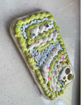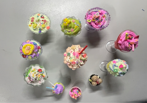 活动开始,同学们选好要粘在奶油胶上的小配件和喜欢的奶油胶颜色,开始尽情发挥自己的想象,用色彩斑斓的奶油胶打造独一无二的奶油杯。